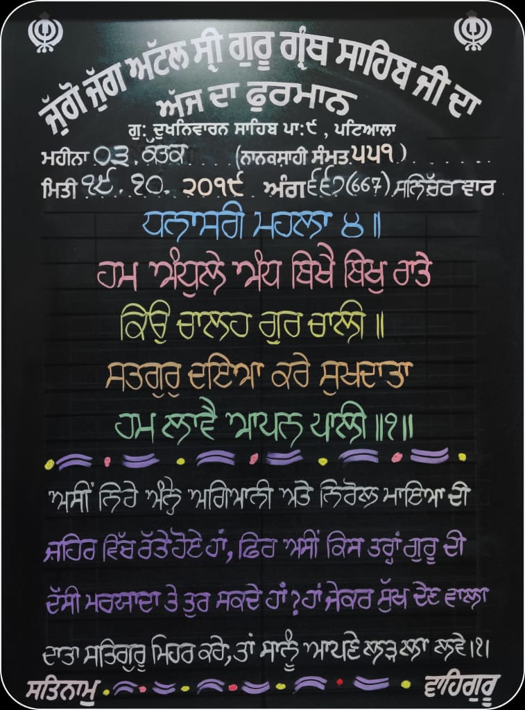 Hukumnama Sahib 19 October 2019